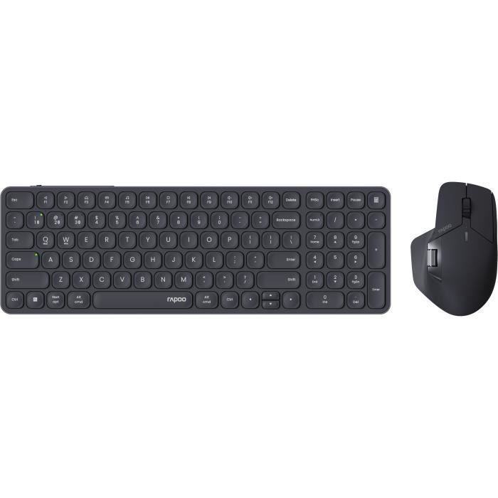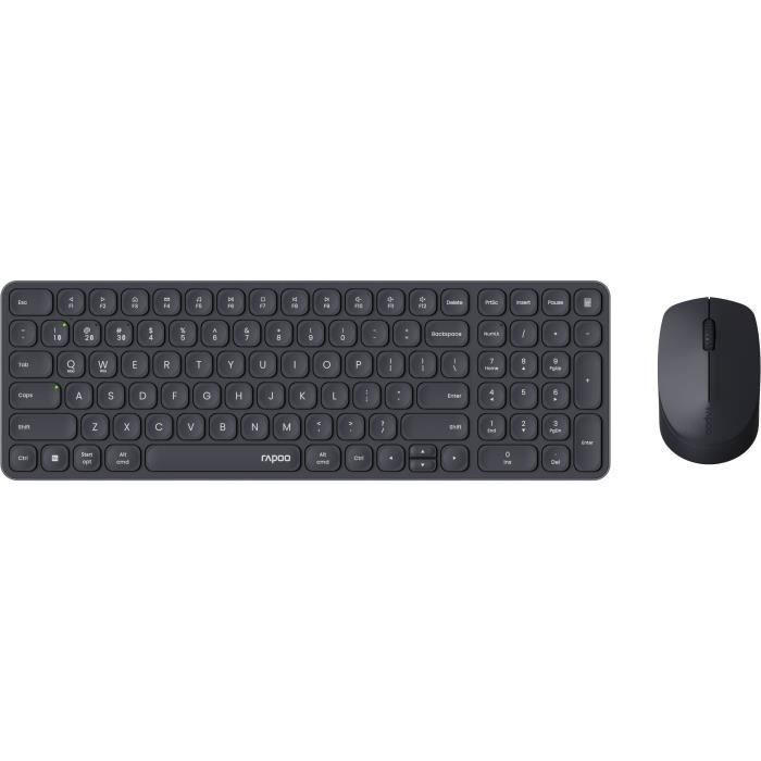 Keyboard and mouse set - RAPOO - 9700M - Wireless - AZERTY - Ultra-slim - Black